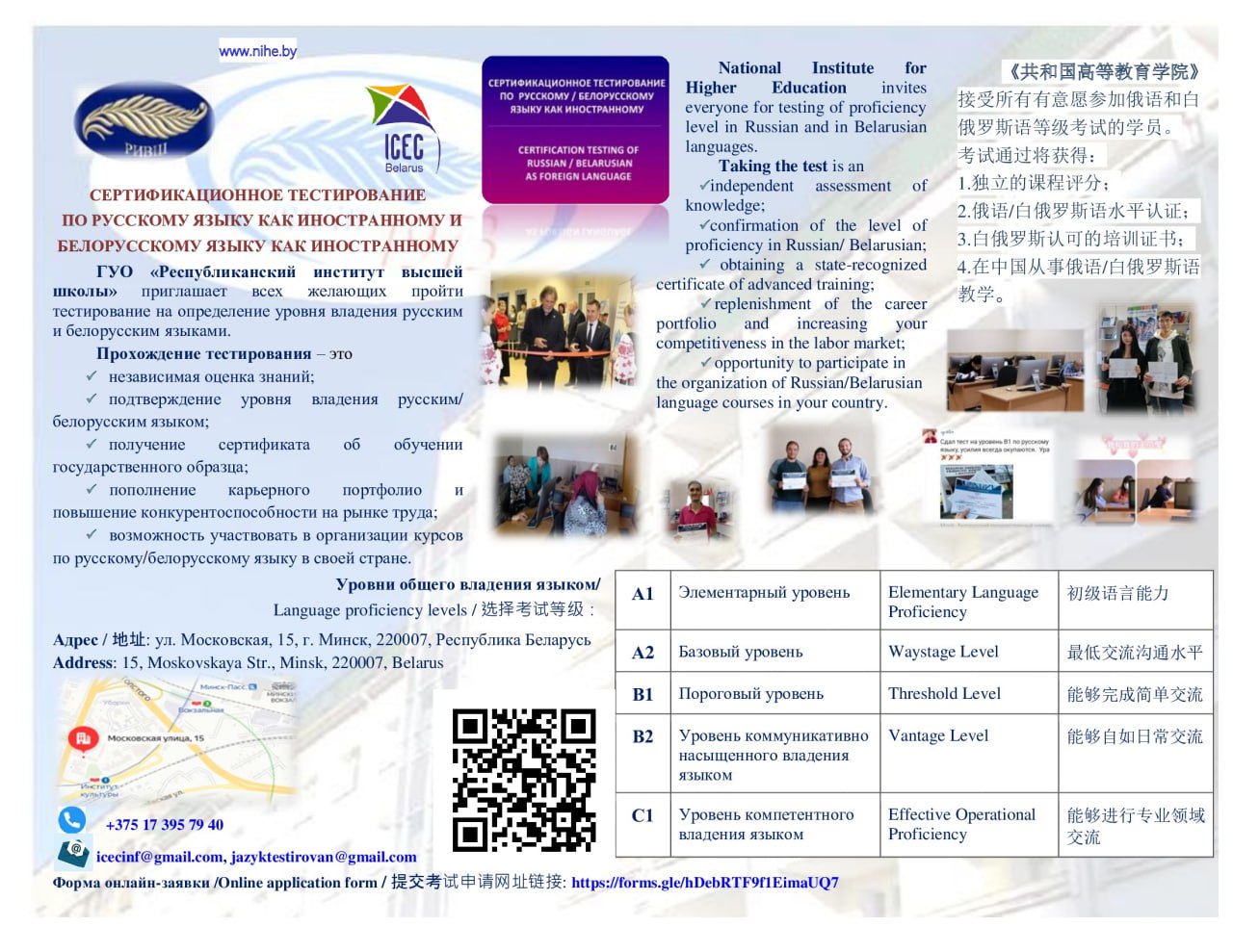 Information about passing the test of proficiency level of Russian and Belarusian languages