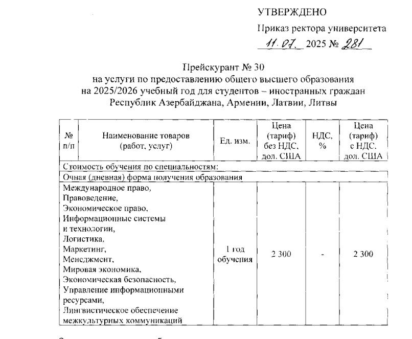 Иностранные граждане и лица без гражданства, не проживающие на территории Республики Беларусь, могут поступать в университет для получения высшего образования на платной основе – по результатам собеседования, устанавливающего уровень владения ими языком, на котором осуществляется образовательный процесс, в объеме, достаточном для освоения содержания образовательной программы. Стоимость обучения для граждан Российской Федерации, Украины и Республики Казахстан устанавливается на уровне стоимости обучения для граждан Республики Беларусь.