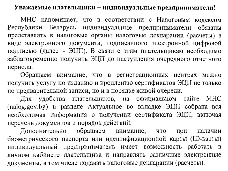 Министерства по налогам и сборам Республики Беларусь по Октябрьскому району г.Минска информирует