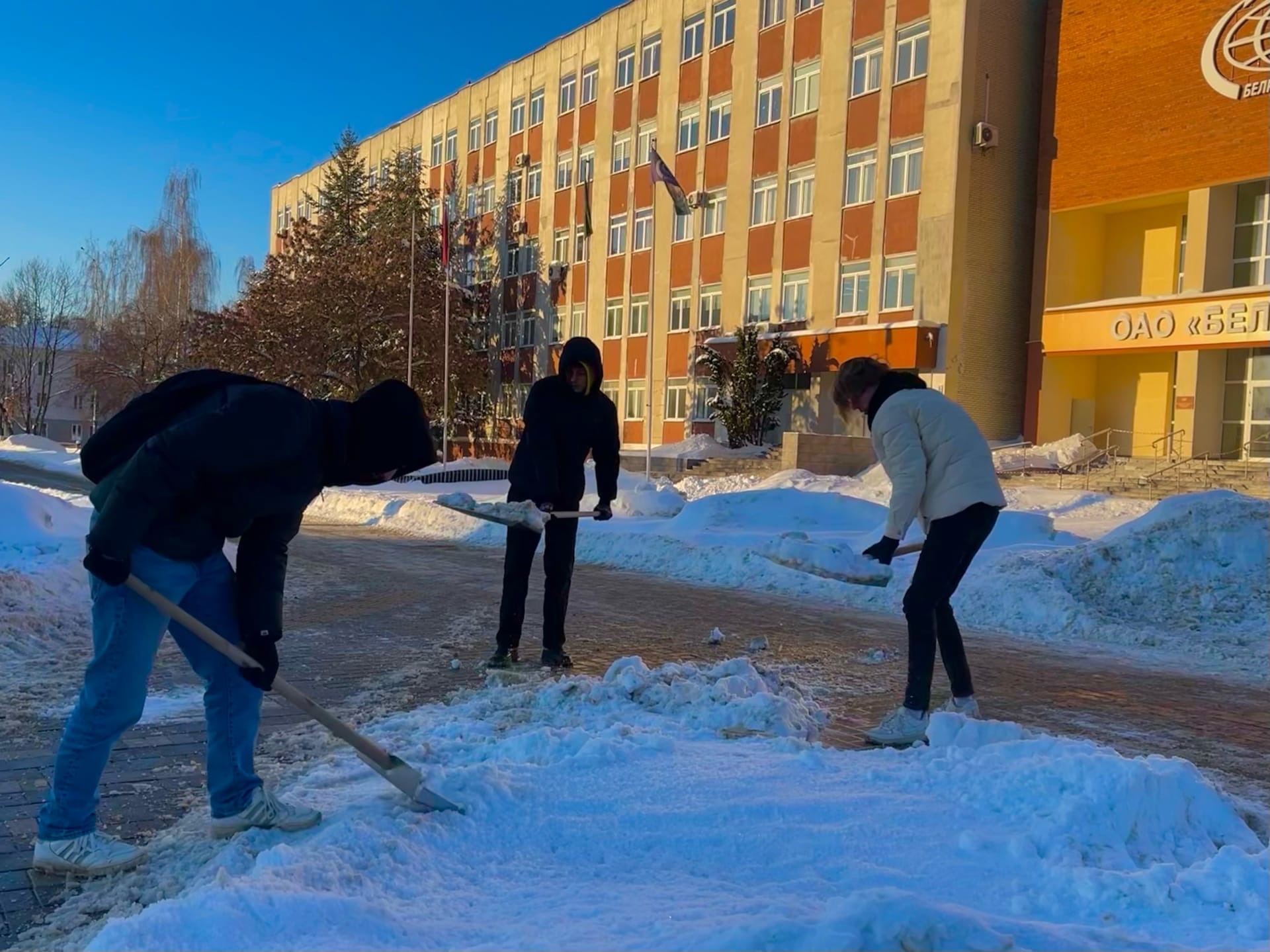 19 декабря студенты Международного университета «МИТСО» приняли участие в уборке снега и благоустройстве Октябрьского района по улице Казинца.