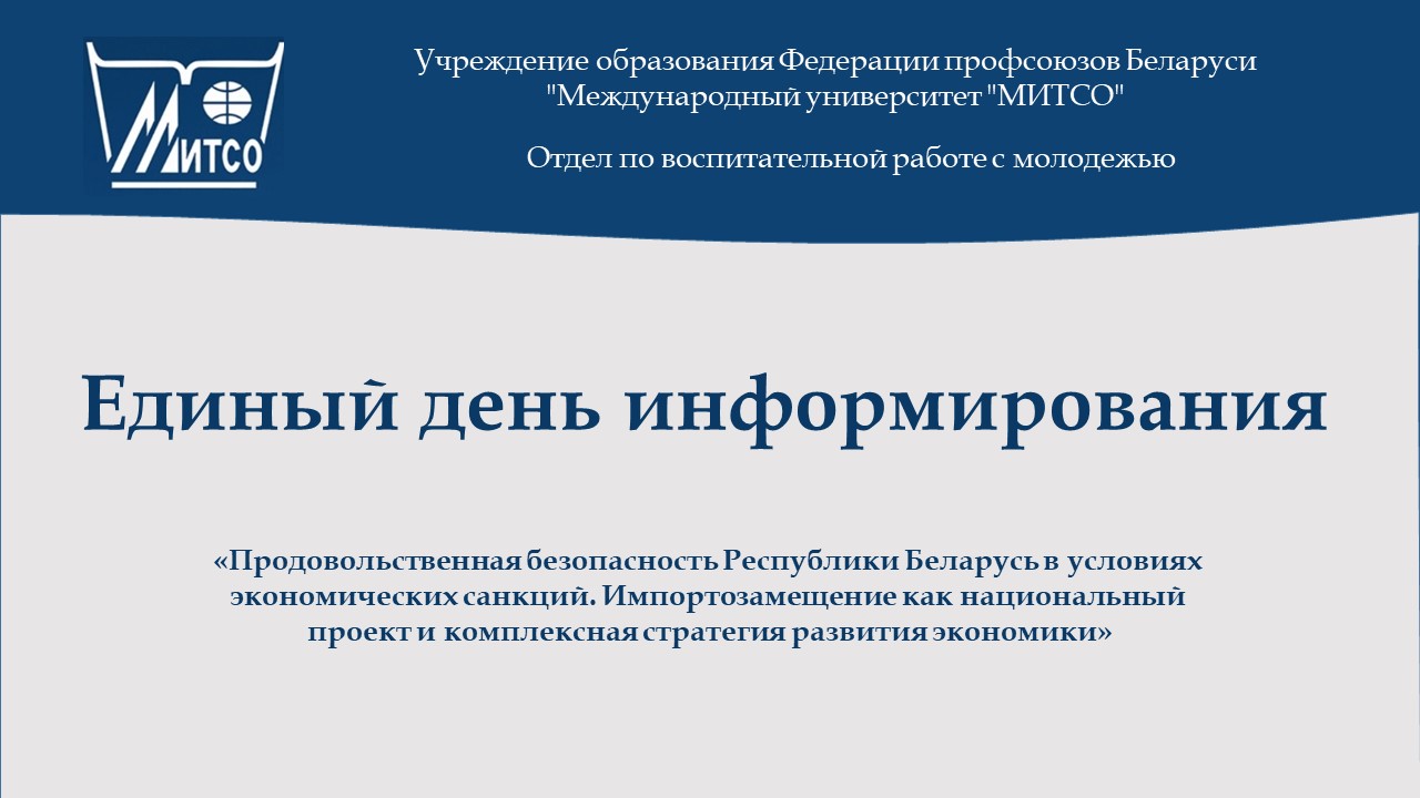на тему «Продовольственная безопасность Республики Беларусь в условиях экономических санкций. Импортозамещение как национальный проект и комплексная стратегия развития экономики».