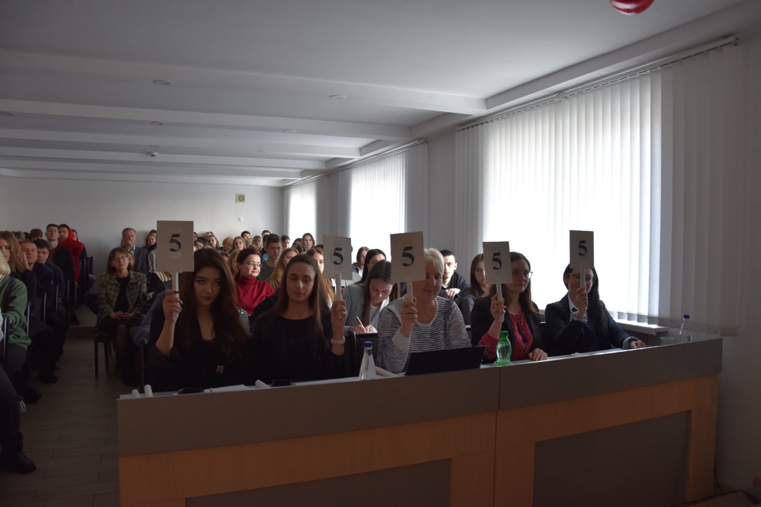 За почетное звание боролись 5 парней: Блудчий Даниил, Бойко Максимиан, Ермак Иван – «Логисты»; Корниенко Тихон, Музыка Никита – «Правоведы».