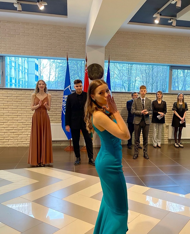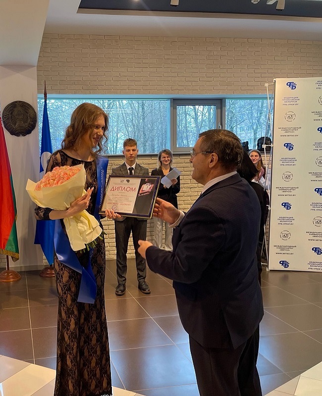 14 апреля 2023 года в холле нового корпуса Международного университета «МИТСО» состоялась торжественная церемония награждения участников конкурса визиток и творческих номеров «Мисс и Мистер Международного университета «МИТСО» - 2023».