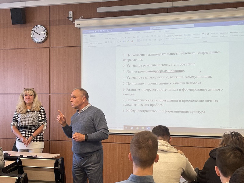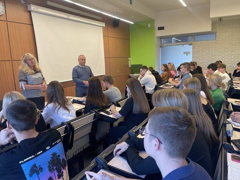 О направлениях работы нового студенческого общества сегодня, 26 сентября, студентам специальности «Экономическое право» рассказали заведующий кафедрой социально-гуманитарных дисциплин, доктор психологических наук, профессор Александр Пастушеня и старший преподаватель кафедры Татьяна Яшина.