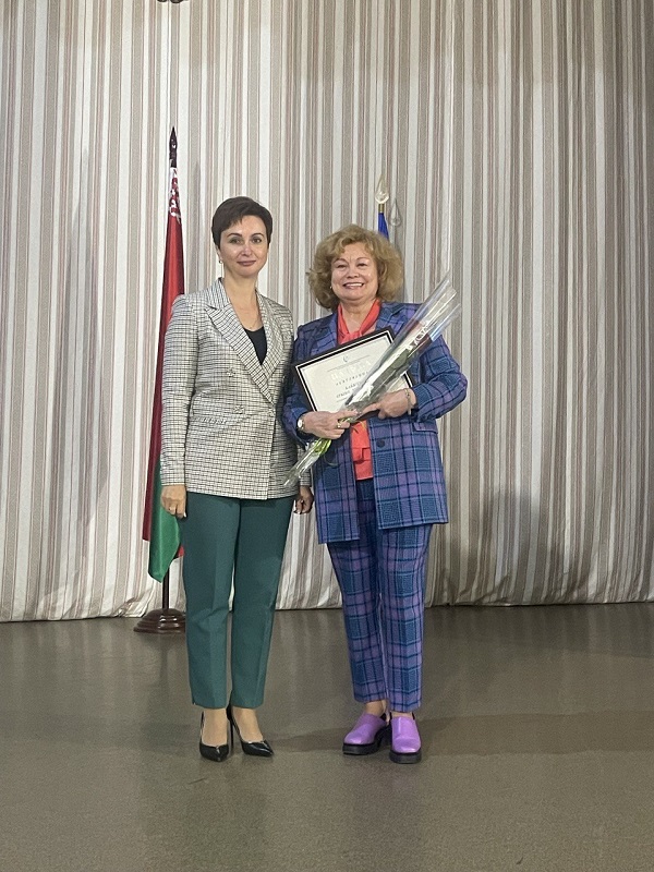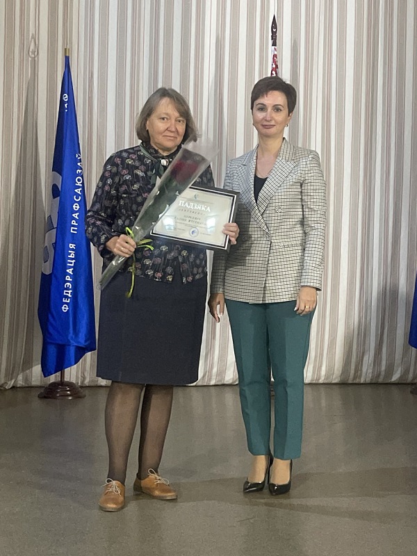 Почетный гость праздничного мероприятия - заместитель председателя профсоюза работников образования и науки Оксана Владимировна Василевич за содействие профсоюзу в реализации программ его деятельности вручила благодарности: ведущему специалисту Ольге Валерьевне Руденко; профессору кафедры бизнес-анализа и математического моделирования Галине Евгеньевне Хурсевич; профессору кафедры экономики и менеджмента Ирине Николаевне Бобковой.