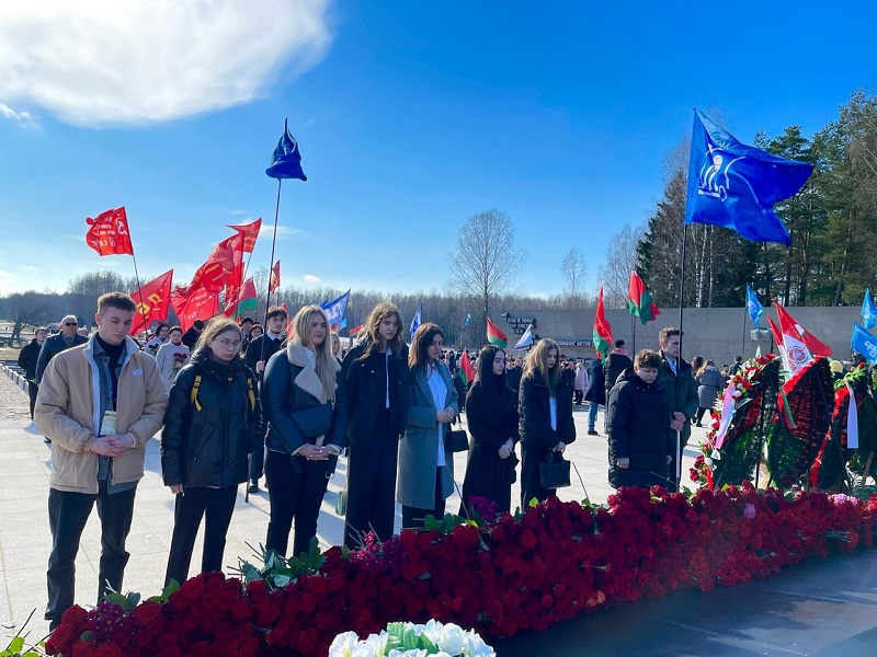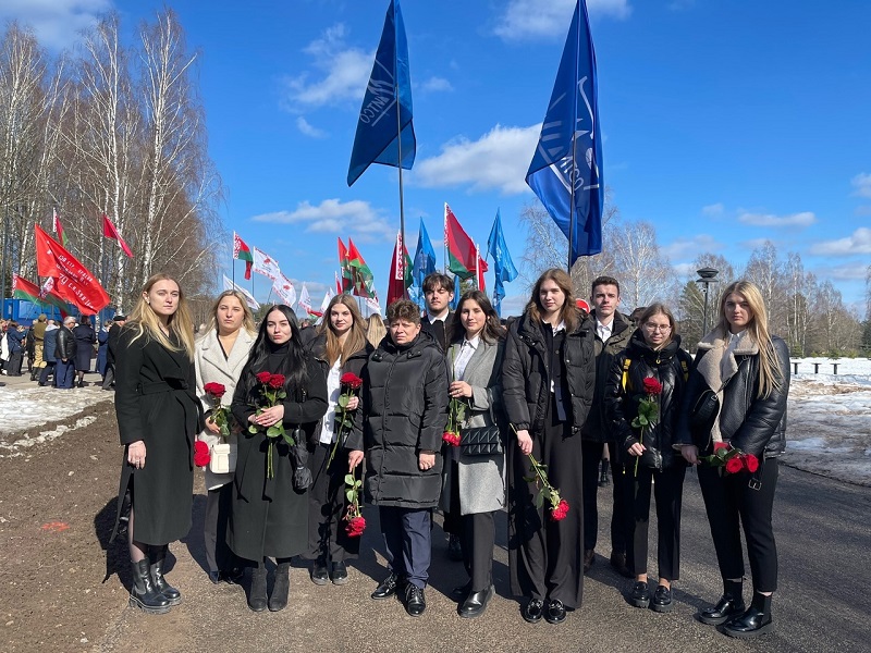 Представители Международного университета «МИТСО» во главе с проректором по воспитательной работе Еленой Вацлавовной Карпинской-Сакович приняли участие в торжественном возложении венков и цветов в мемориальном комплексе «Хатынь».