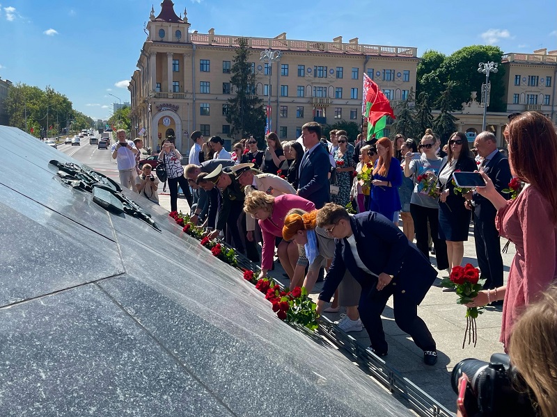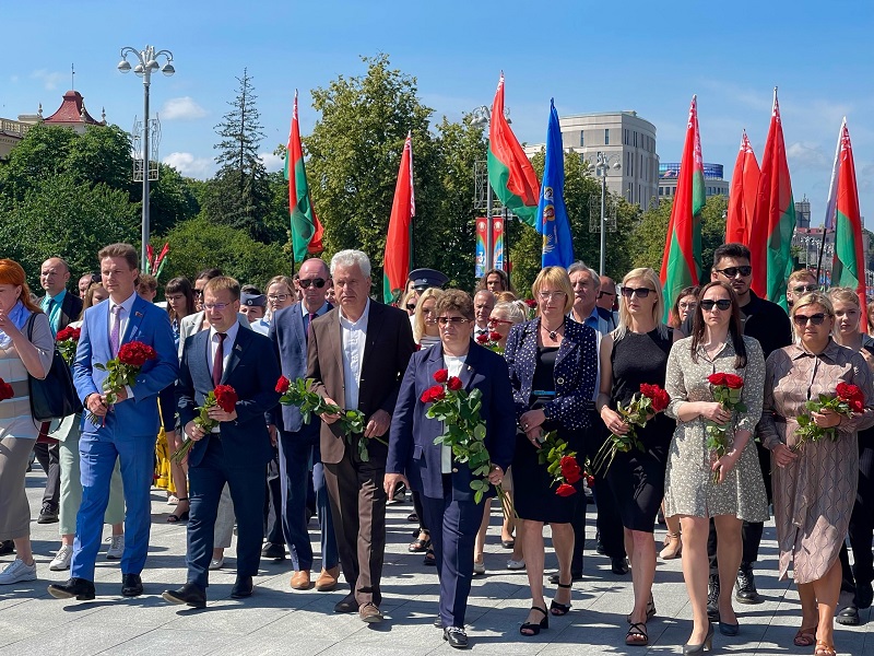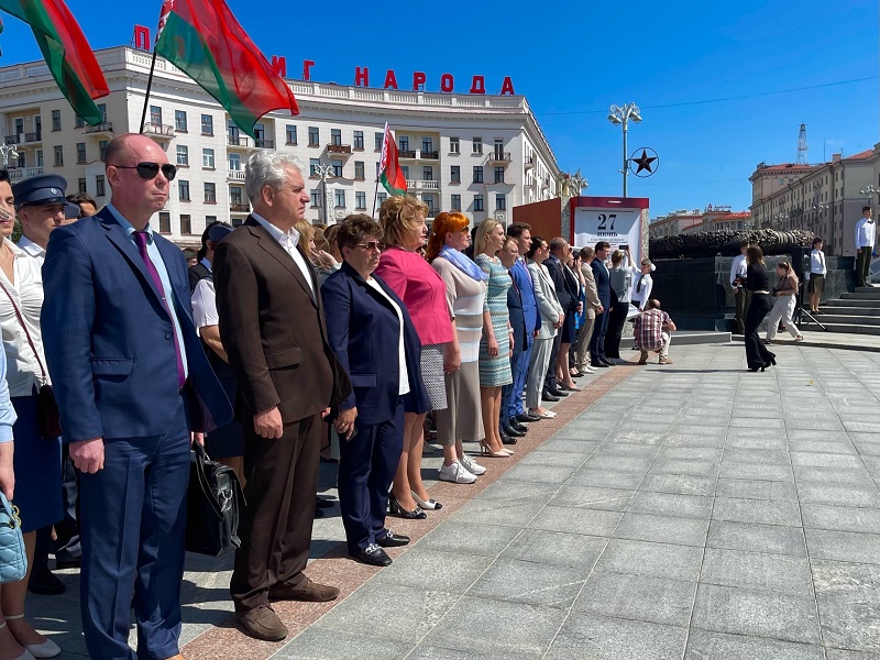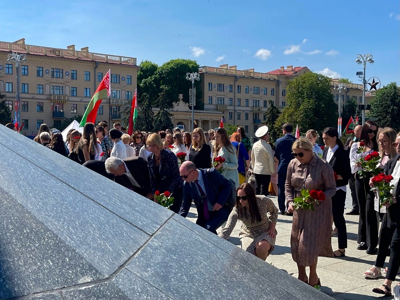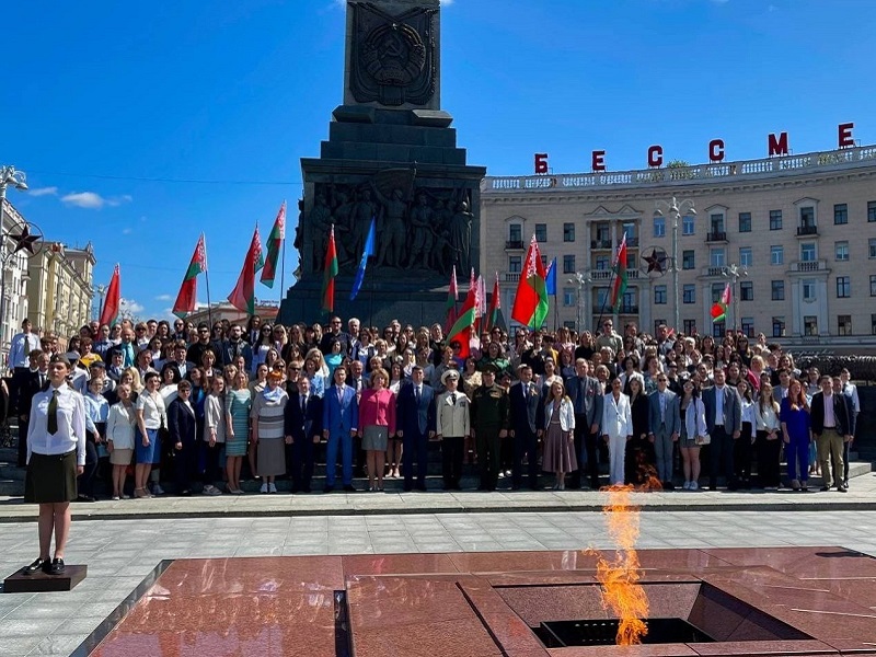 Представители Международного университета «МИТСО» приняли участие в митинге, приуроченном к акции «Календарь памяти» возложив цветы к монументу Победы.