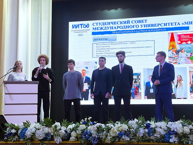 Выступили с презентациями студенческих сообществ и социальных, культурных, научных и предпринимательских проектов студентов России и Беларуси: глава студенческого совета ФМО СПбГУ Конохов Андрей, секретарь ПО ОО «БРСМ» с правами РК МИТСО Полянский Данила, председатель студенческого совета МИТСО Тишков Роман.