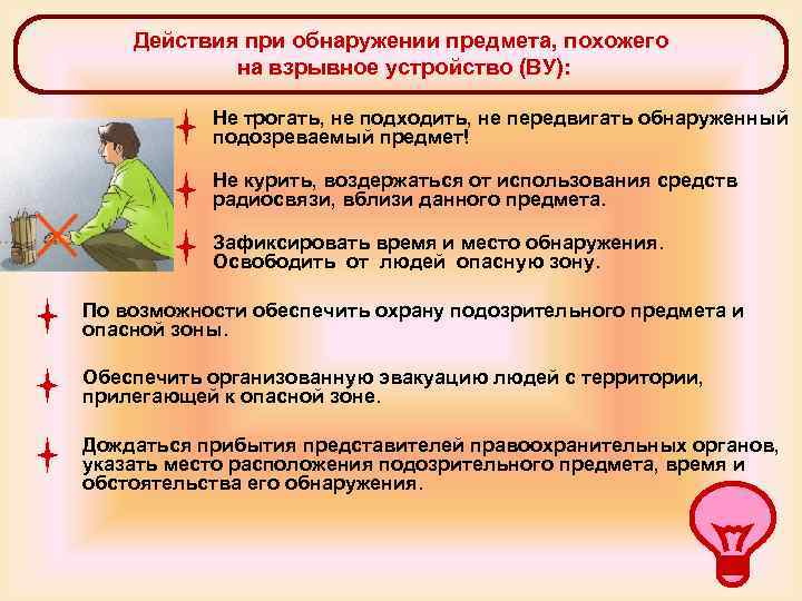 Памятка действий при обнаружении предмета, похожего на взрывное устройство